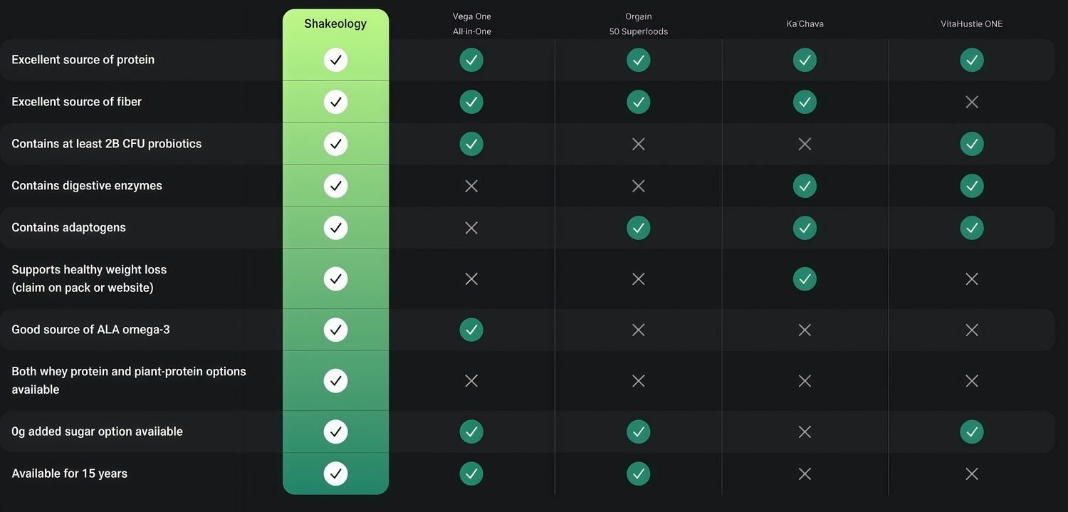 Ka’Chava is a trademark of Tribal Nutrition LLC. VitaHustle ONE is a trademark of Hustle Hart LLC. Vega is a trademark of Sequel Naturals ULC. Orgain is a trademark of Orgain LLC.